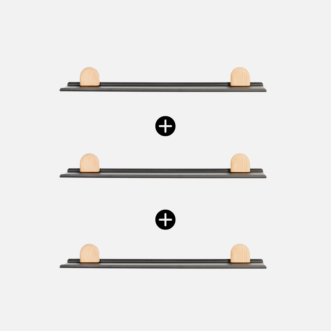 Meet Bobby and Bob, our locally made lip shelves with a ton of charm! Made from powder-coated steel, these shelves include solid oak pieces that magnetically connect to the shelf, hiding your screws for a clean, minimalist look.